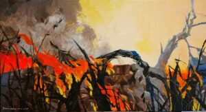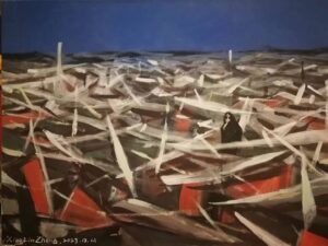 Zhang Xiaolin’s view on art – Works of art are not the icing on the cake of life, nor are they the expression of certain personal feelings. It’s not commercial entertainment. It should be a sharp sword of thought, marking the mark of this era. Introduction to the artist’s works – In Zhang Xiaolin’s symbolic paintings, we will see the early Red Spectrum Series, Bacon Series, Alienation Series, and other symbolic character portrait works. After 2020, he began to think about and reflect on major events in modern China. Interpretation. It shows the tragic and desolate ruins of the past, and the characters’ eyes are depicted as indifferent black holes, becoming a distinctive symbol of that absurd era. Recent masterpieces: “Red Sun Theme Series” “Cultural Revolution Theme Series” “Ruins of Civilization Series” “Disaster Series”